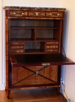 Secrètaire et commode XVIIIème décors de marqueterie de bois de placage identique.