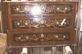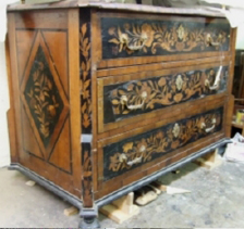 Ci-dessous, vous pourrez apprécier le travail de notre atelier d’ébénistes sur Paris, en découvrant les différentes étapes de restauration d’une commode Louis XIV: